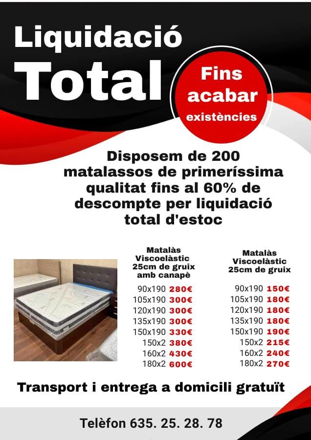Em complau informar-los que el nostre departament d'impuls per a petites empreses de Catalunya està llançant una emocionant oferta de liquidació de matalassos, i volem assegurar-nos que estiguin al corrent d'aquesta oportunitat exclusiva.